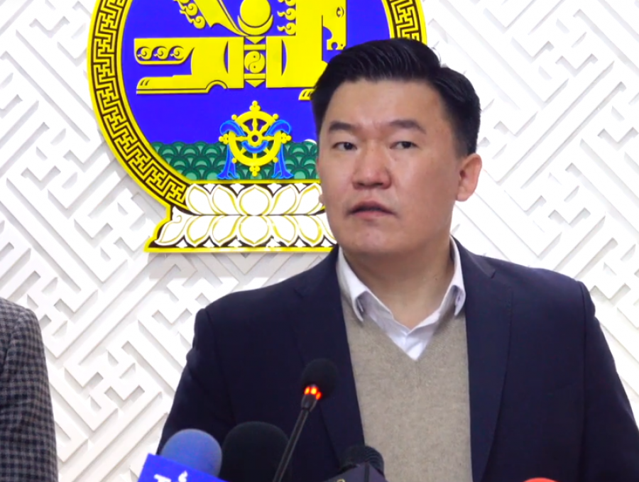 АН-ын дарга М.Тулгат, Ерөнхий нарийн бичгийн дарга Ч.Өнөрбаяр нар цаг үеийн асуудлаар мэдээлэл хийж байна.